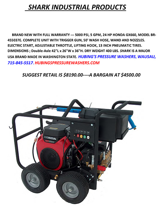 Call Hubing's Pressure Washers & Steam Cleanersat 715-845-5517.