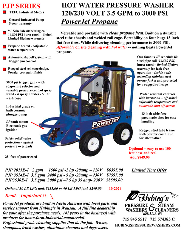 Call Hubing's Pressure Washers & Steam Cleanersat 715-845-5517.